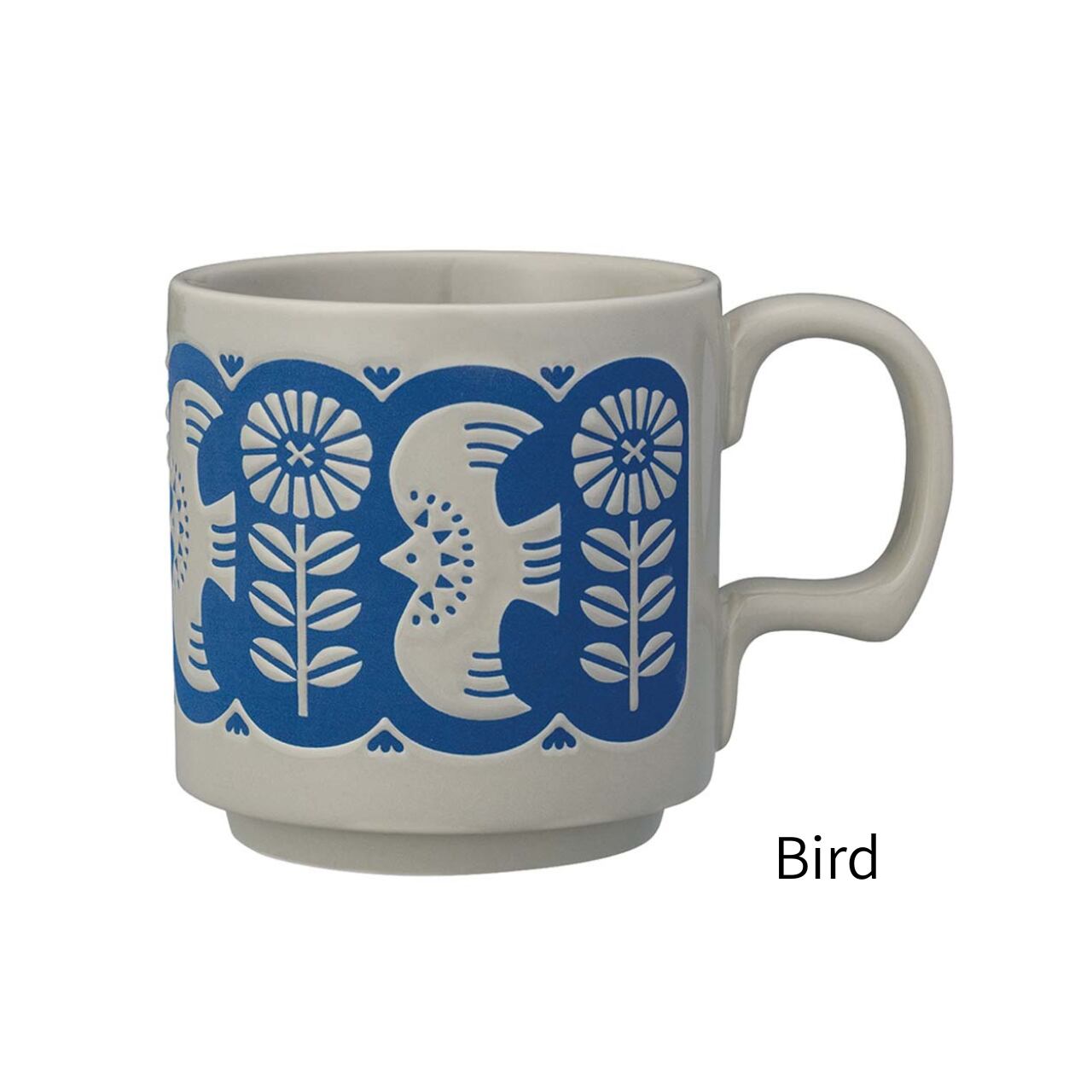 ぽこっと浮き出たパターン模様と明るい色彩がポイントのマグカップ。
