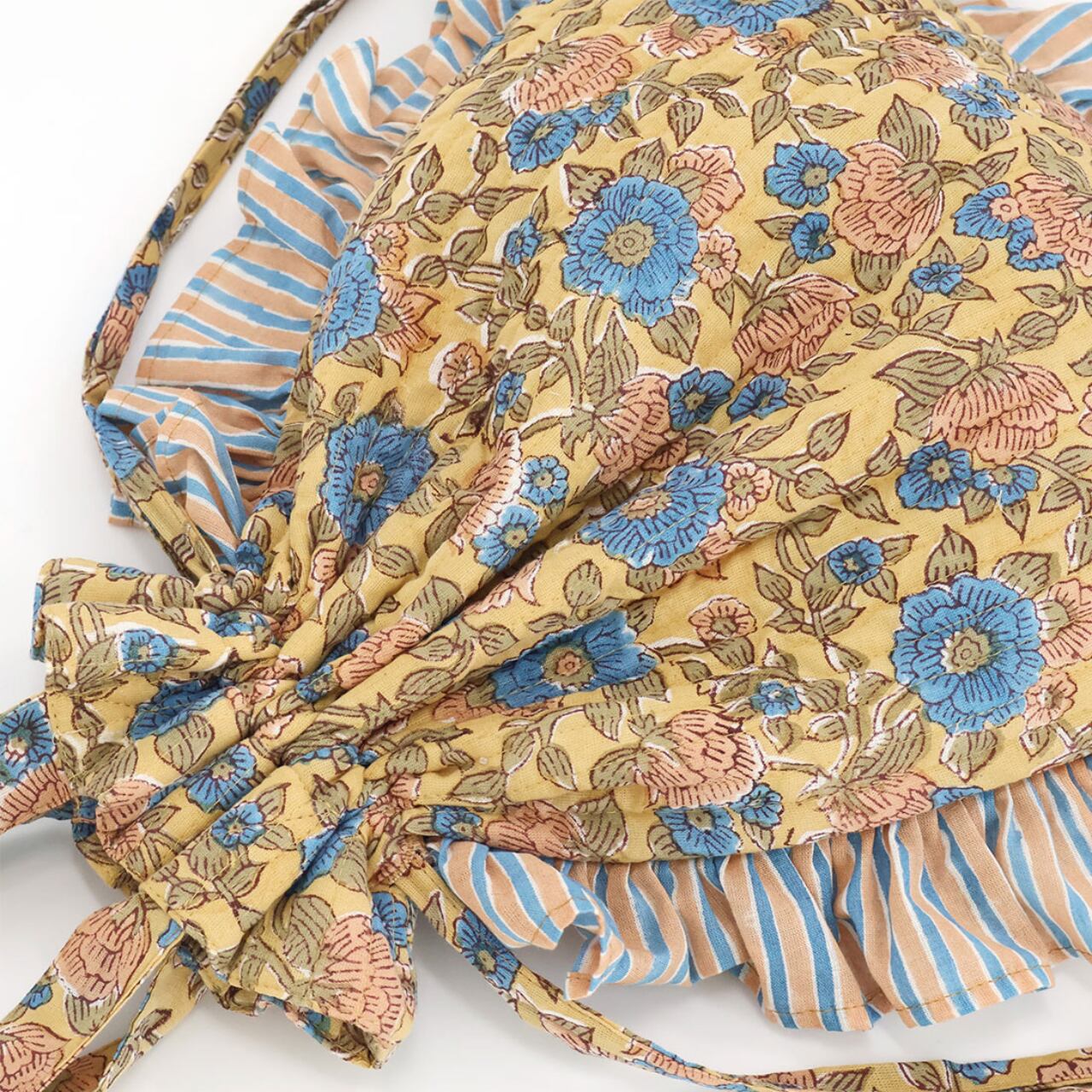 ブロックプリントのキルティング生地とフリルがが可愛いトートバッグです。
