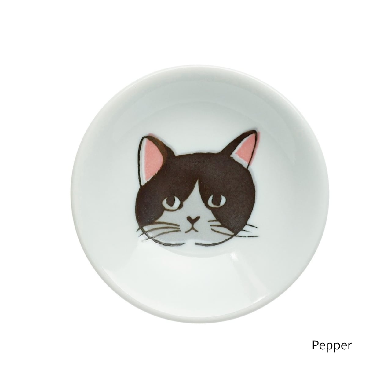 プレートの中央には、松尾ミユキさんの描くほっこりとした表情のネコたち。