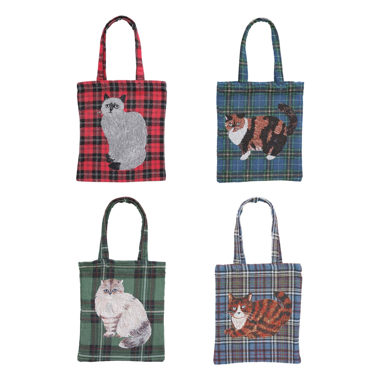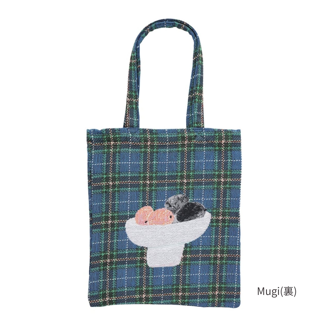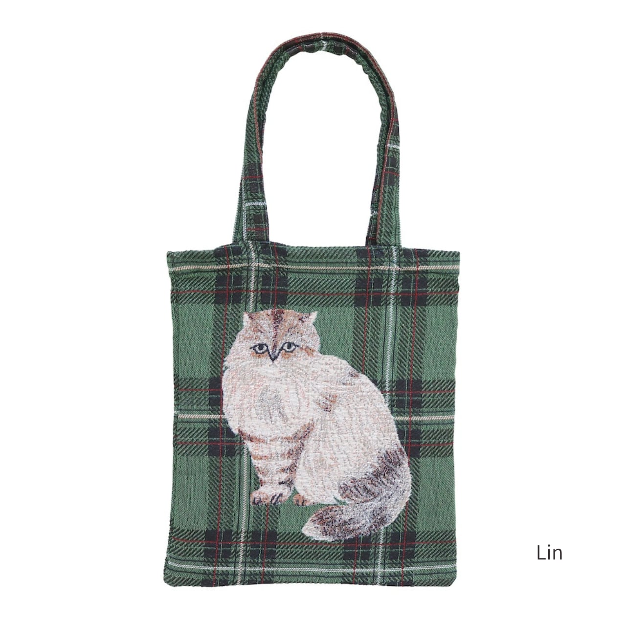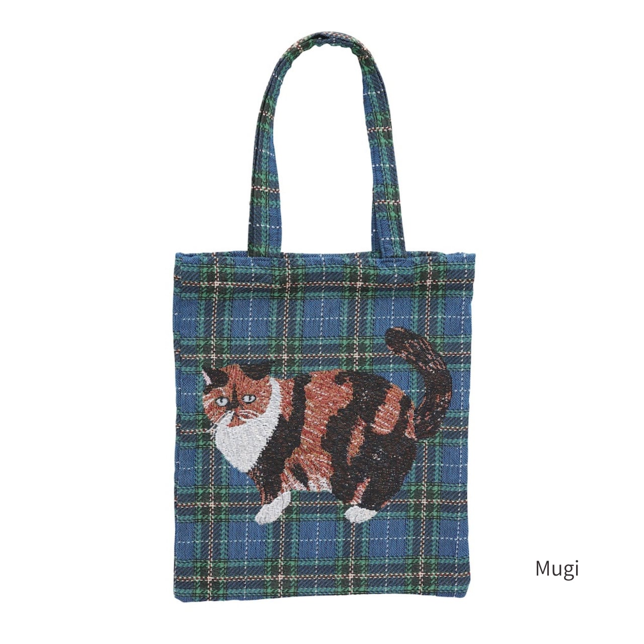 松尾ミユキさんが描くネコたちがデザインされたゴブラン織りのトートバッグ。