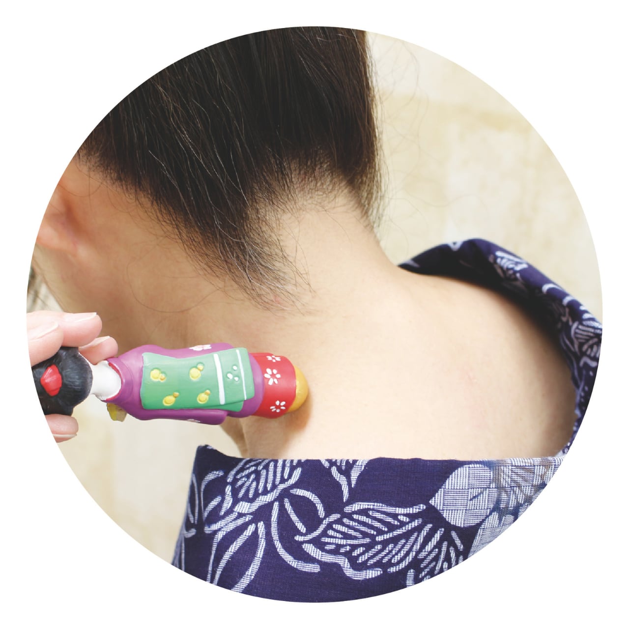 ツボ押しとしてご使用になる場合は、衣類などの上から使用すると色移りする場合がございますのでご注意ください。