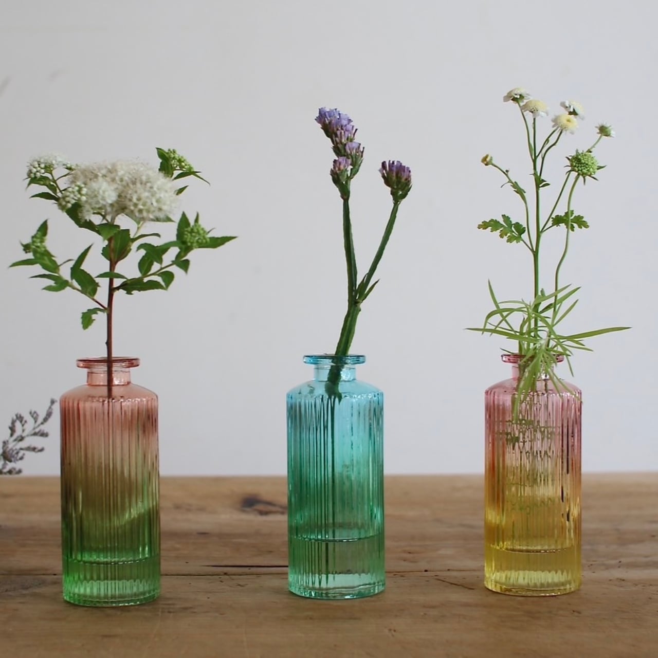 2色のグラデーションが美しいガラスのフラワーベース。