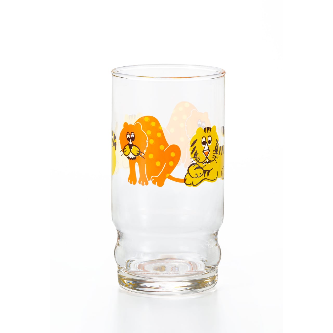 ぷっくりとした膨らみのあるフォルムが特徴の「アデリアアレンジ」は昭和48(1973)年にアデリアが発売したガラス製のコップ(グラス)です。普段使いにちょうど良くかわいらしいコップで、昭和当時は様々なプリントを施して販売されていました。くびれがあるので持ちやすく、どんなドリンクとも相性の良いスタンダードな形状も魅力です。現代でもファンの多いこのコップを、アデリアレトロシリーズとして復刻しました。コップをひっくり返して見ると底にアデリアのaマークが刻印されているのも、昭和当時のデザインが基になっています。