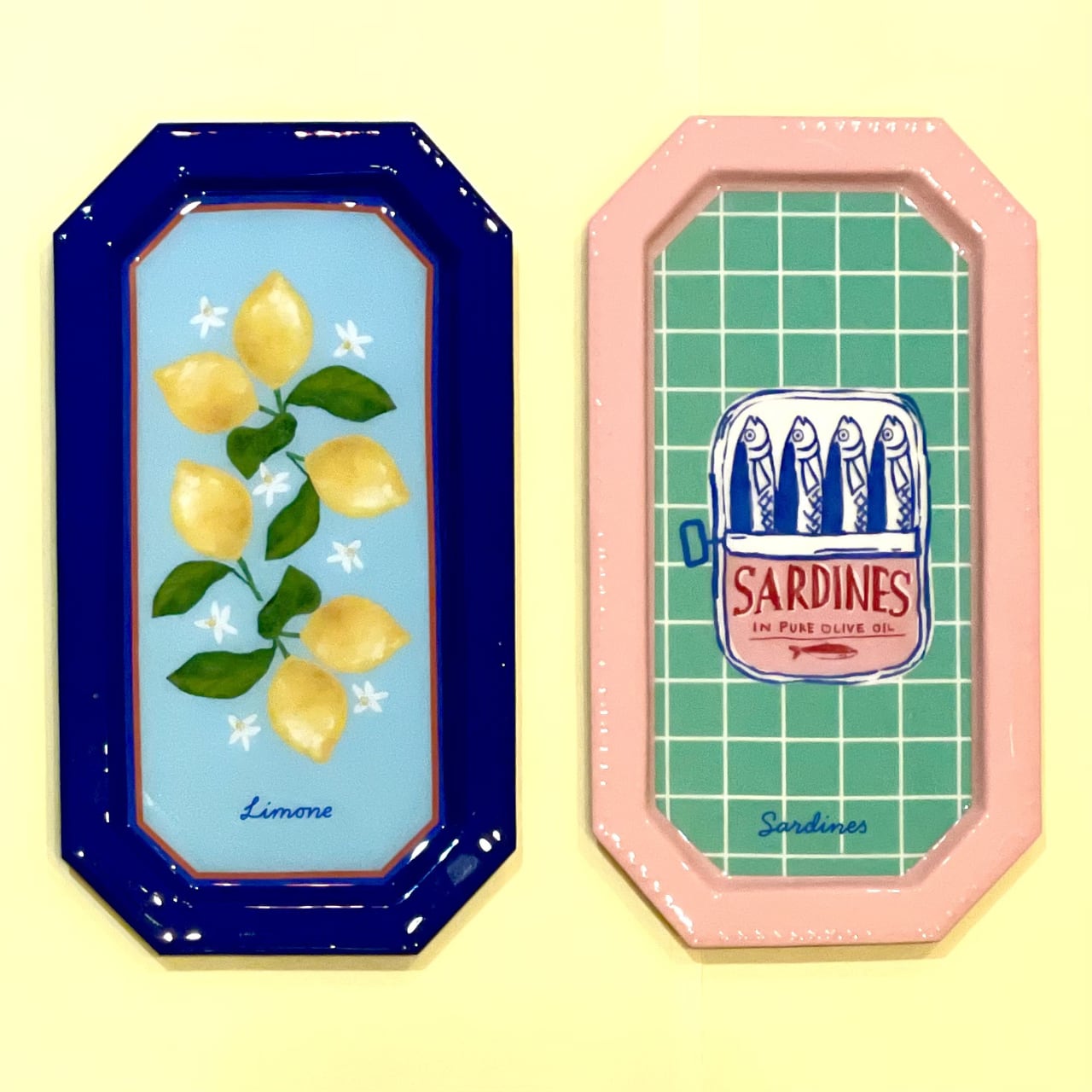 南欧をイメージしたポップな配色とモチーフが目を引く、レクタングルのアイアントレイ。